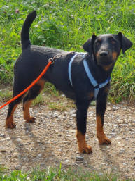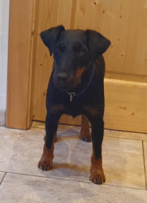 schwarzroter, kompakter, gut proportionierter Jagdgebrauchshund